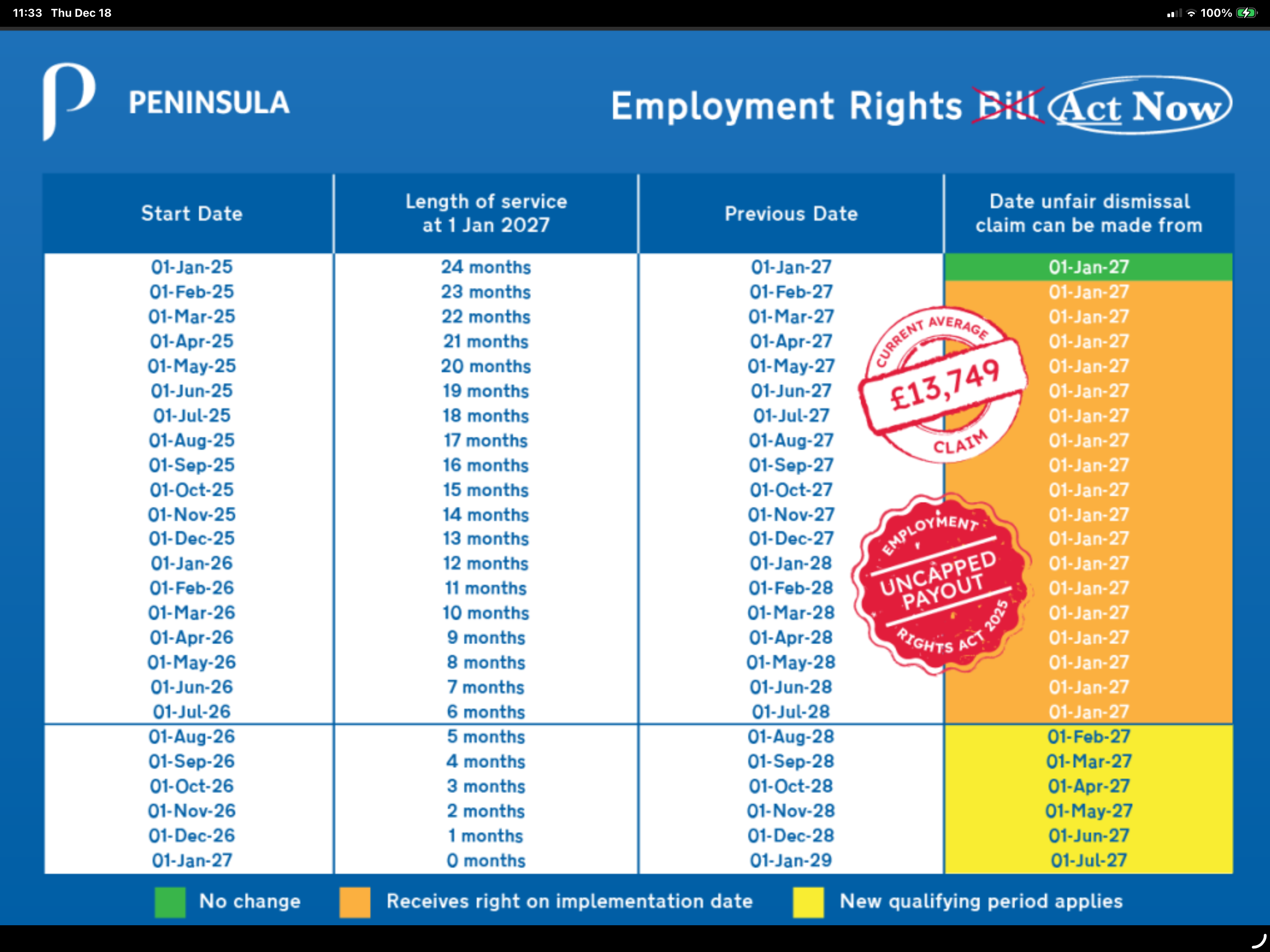 There are 28 changes in Employemt law, scheduled under the government's Employment Rights Bill. My role is to help businesses navigate complex HR, employment law as well as Health & Safety…