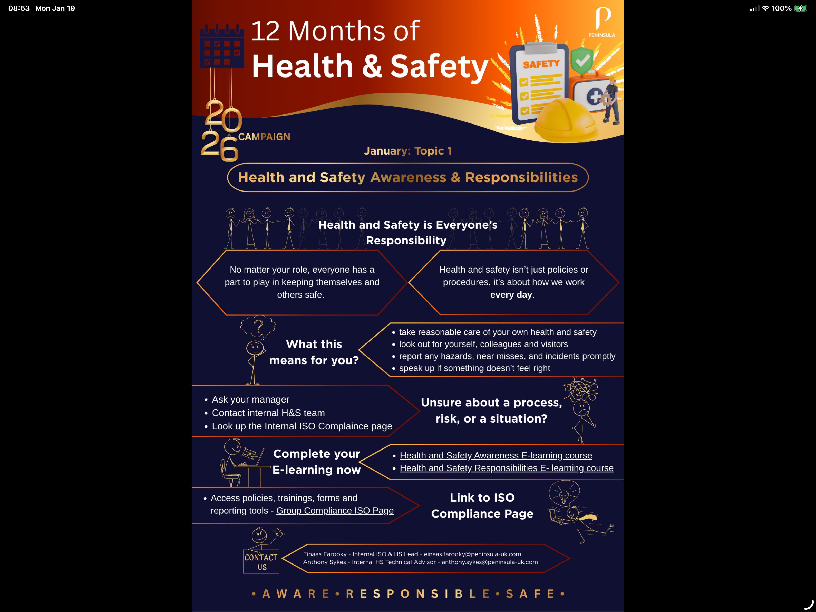 I'll be sharing on this portal , our 12 months of ' health and safety information' , in connection with the most salient elements of this vital responsibility all businesses have.